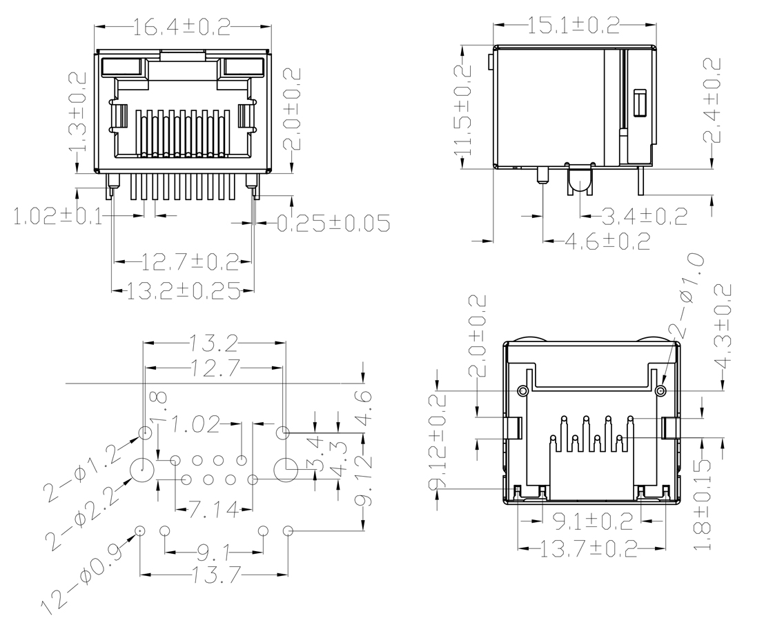RJ45网络接口插座/贴片式/沉板式