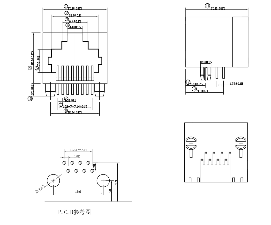 RJ45网络接口插座/贴片式/沉板式