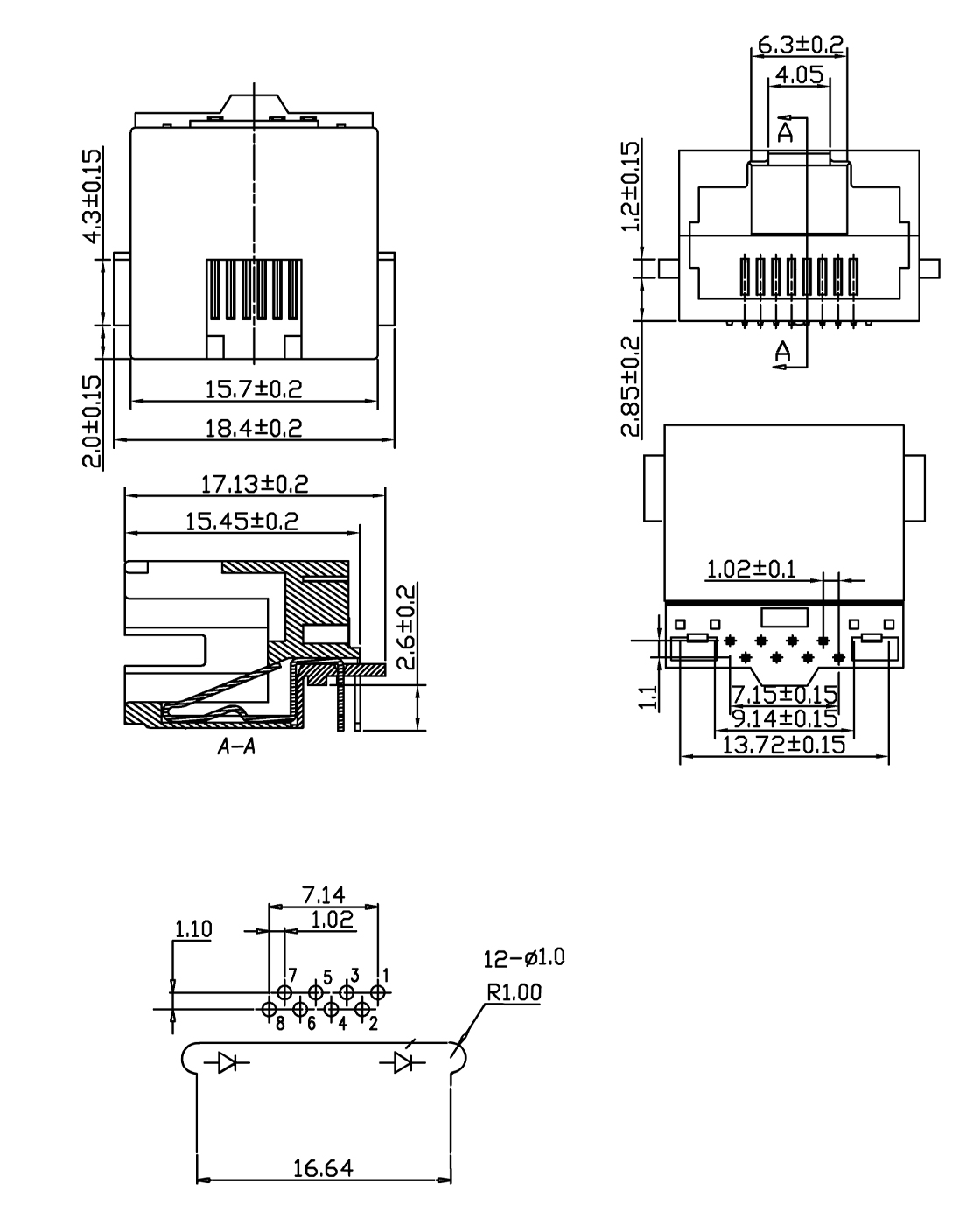 RJ45网络接口插座/贴片式/沉板式