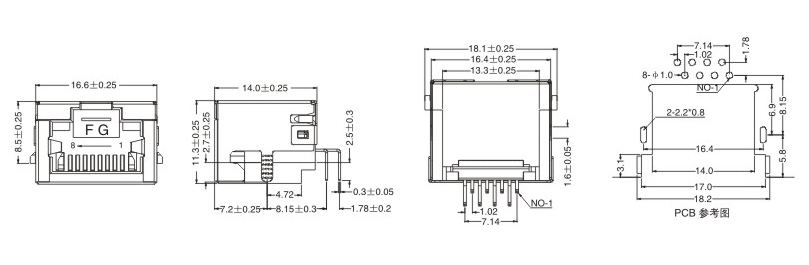 RJ45网络接口插座/贴片式/沉板式