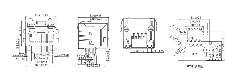 RJ45网络接口插座/贴片式/沉板式