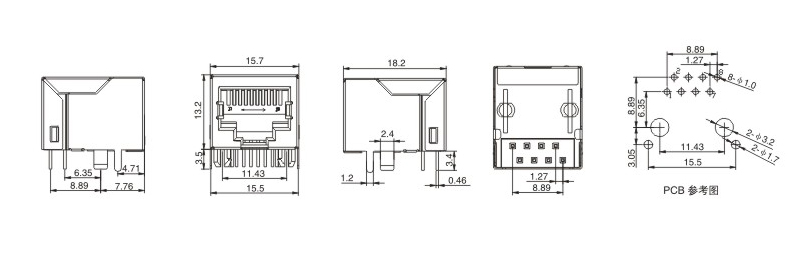 RJ45网络接口插座/贴片式/沉板式