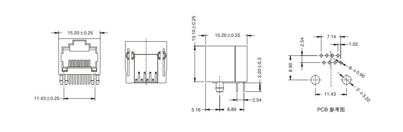 RJ45网络接口插座/贴片式/沉板式