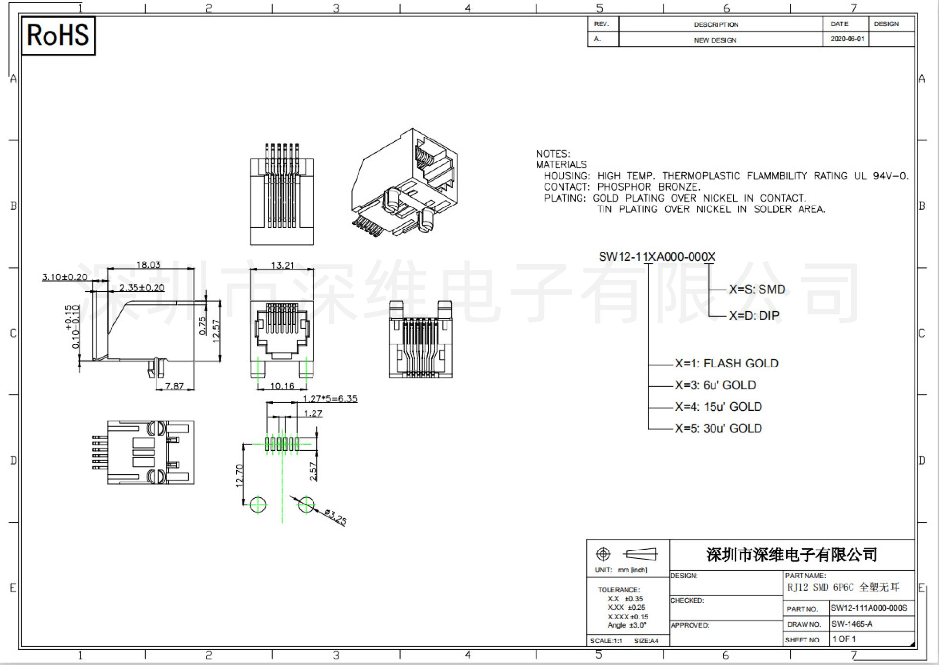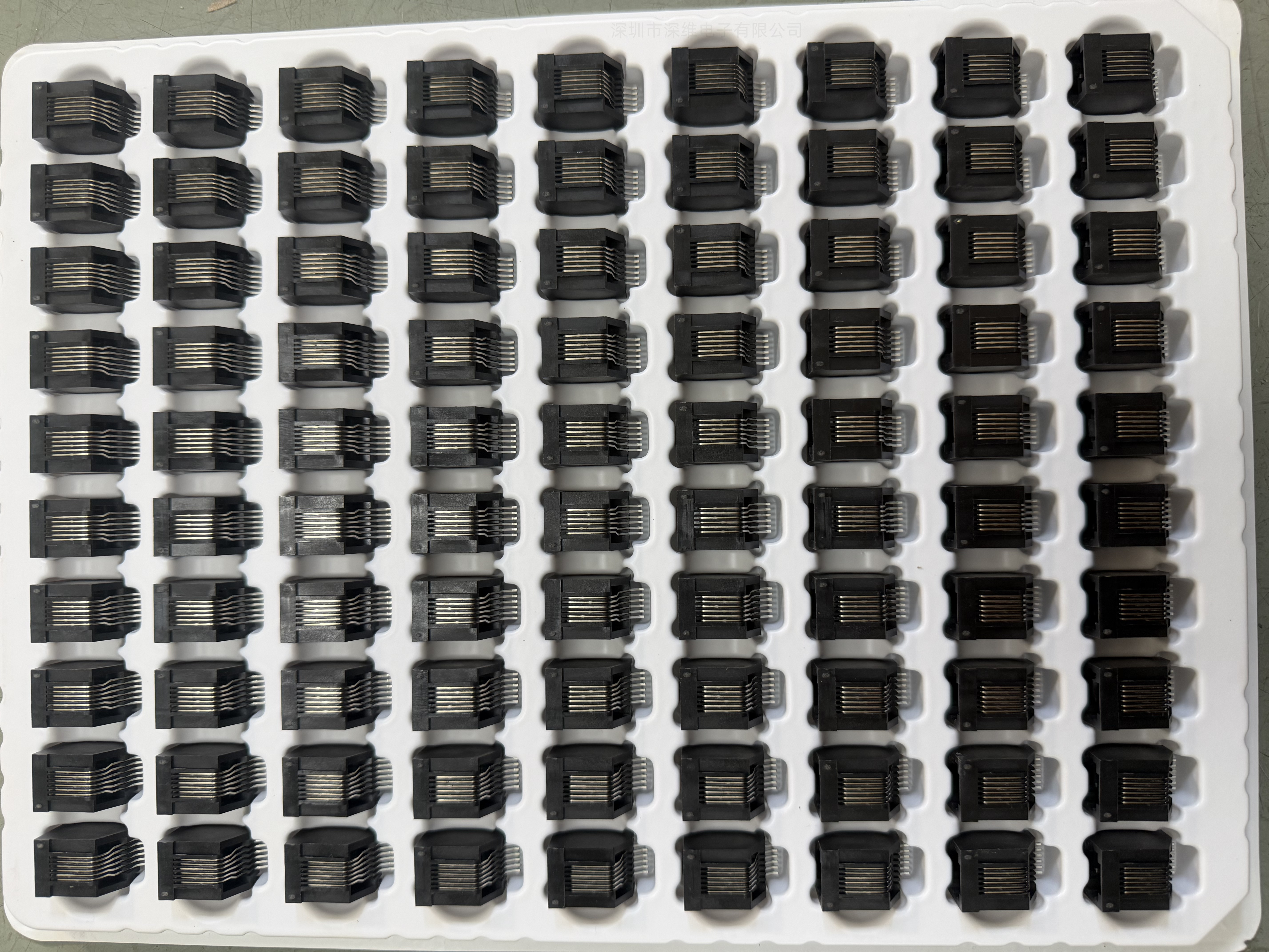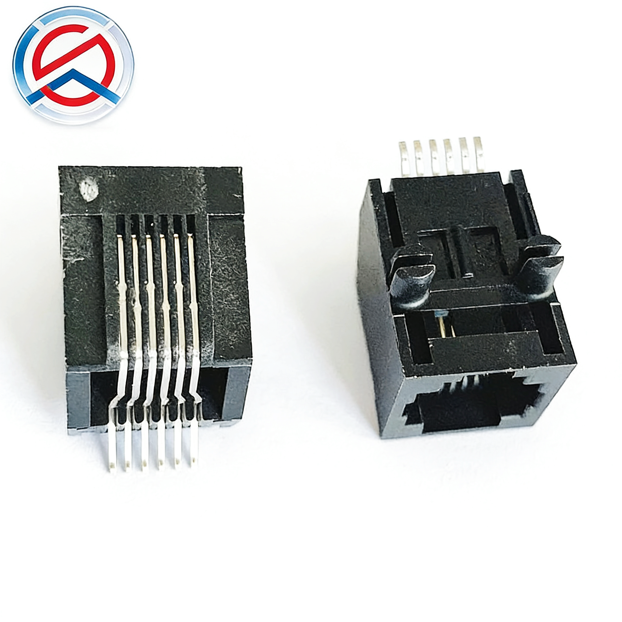 RJ12 6P6C 全塑无耳 SMT端子磷铜镀金G/F 胶芯PA9T黑色 批量 90 PCS/盒 1280/箱